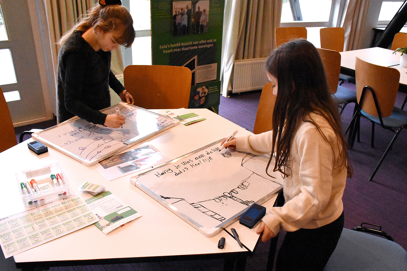 Met welke energiebronnen verwarmden mijn opa en oma hun huis en hoe doen we dat nu? Leerlingen van de Jan van Rijckenborghschool gingen in de Morgensterkerk enthousiast aan de slag met de opdrachten van  Kompas op Groen om hier achter te komen. Na de succesvolle opening vorig jaar in bibliotheek Hilversum toert de tentoonstelling verder door Hilversum: via de Morgensterkerk naar de Bethlehemkerk, waar de expo voor iedereen is te bezoeken.