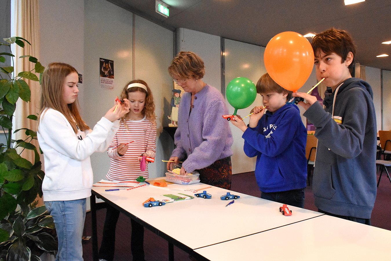 Energiecoach Erik de Lange helpt ondertussen twee jongens die bij het tijdvak ‘2000 – Energie besparen’ meten hoeveel energie een föhn, een led-lamp en een gloeilamp verbruiken. “Wat kost nu meer stroom? De föhn van 1167 watt die vijf minuten aanstaat of de gloeilamp van 41 watt die 24 uur brandt?” De leerlingen kijken de energiecoach vragend aan. In een ouderwetse les hoofdrekenen laat Erik de leerlingen de som 24 X 41 uitsplitsen. Zonder rekenmachine komen ze erachter dat zo’n gloeilampje dat de hele dag aanstaat wel tien keer meer stroom gebruikt dan de föhn op vol vermogen.